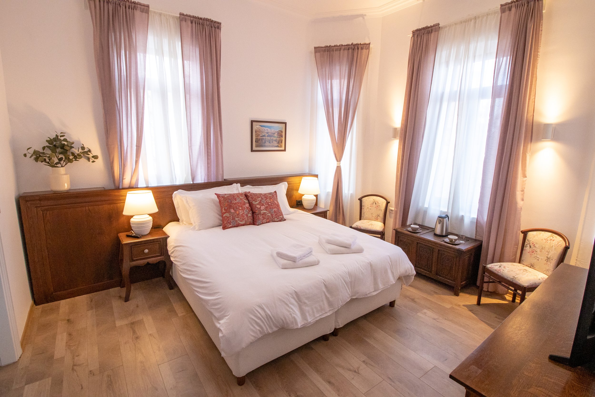 Our largest room is on the main level and offers extra space for added comfort. It includes a bathtub, making it a practical choice for a more relaxed stay in Pogradec.
